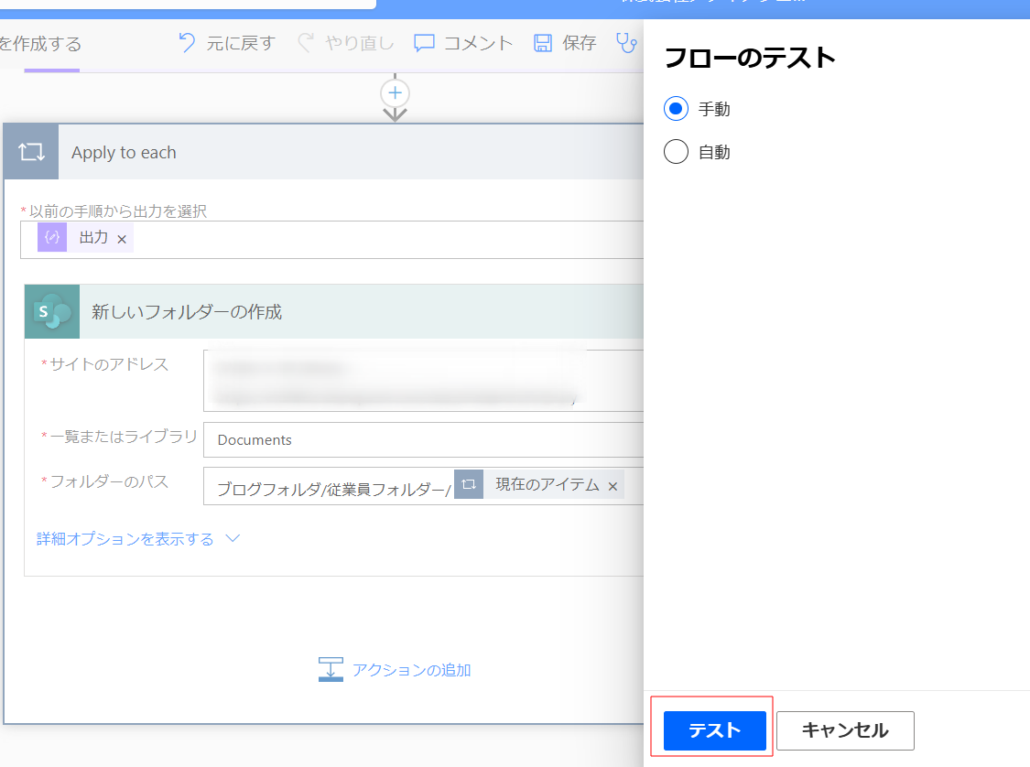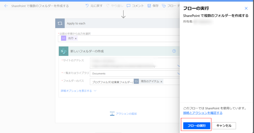 (ii). フローのアクション 「新しいフォルダーの作成」 を使用してフォルダーを作成します。