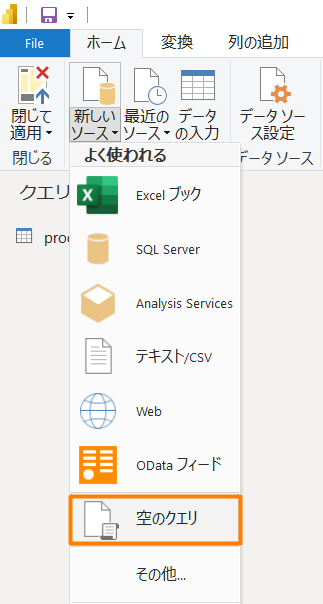 以下では、空のクエリを開いて、簡単な M コードの作成を体験します。