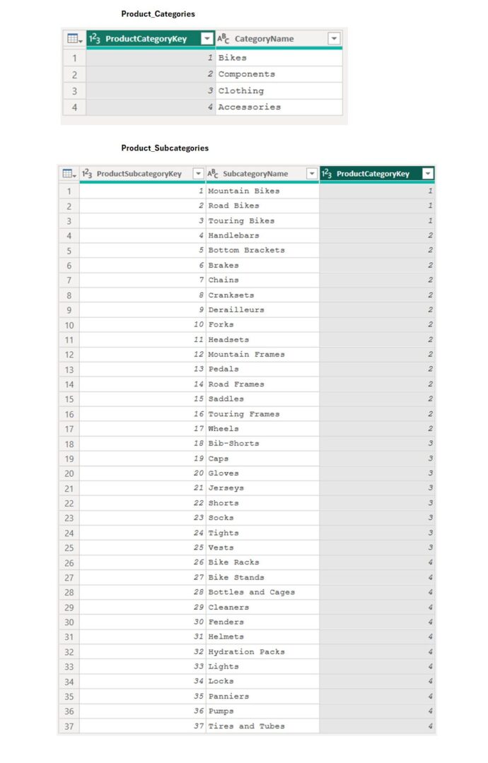 「ProductCategoryKey」列はキーとして両方のテーブルを選択します。