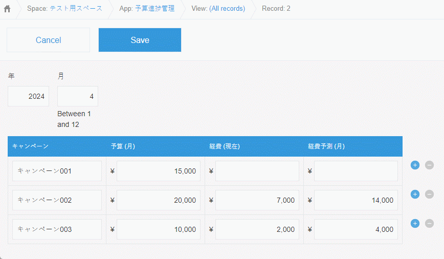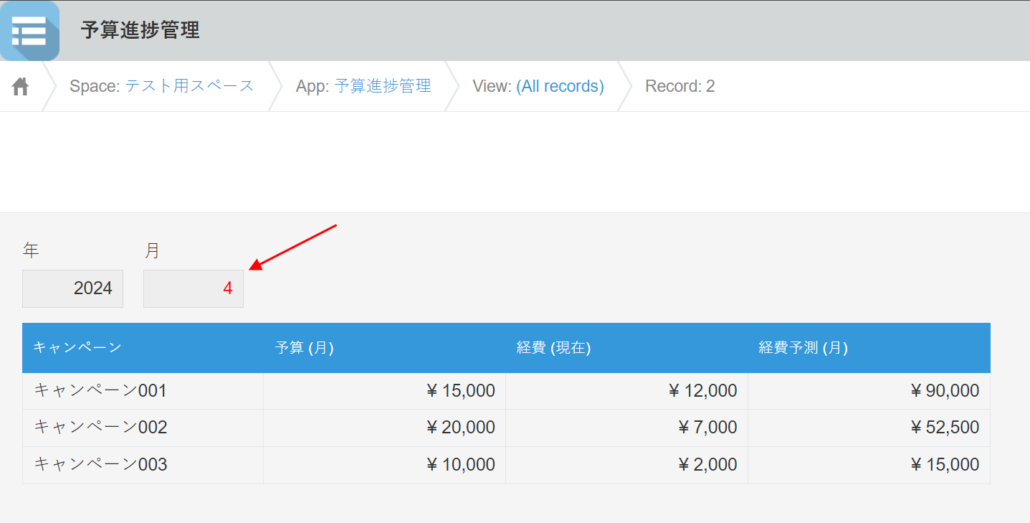 「予算進捗管理」アプリの「月」フィールドの値の色を変更する方法をご案内します。