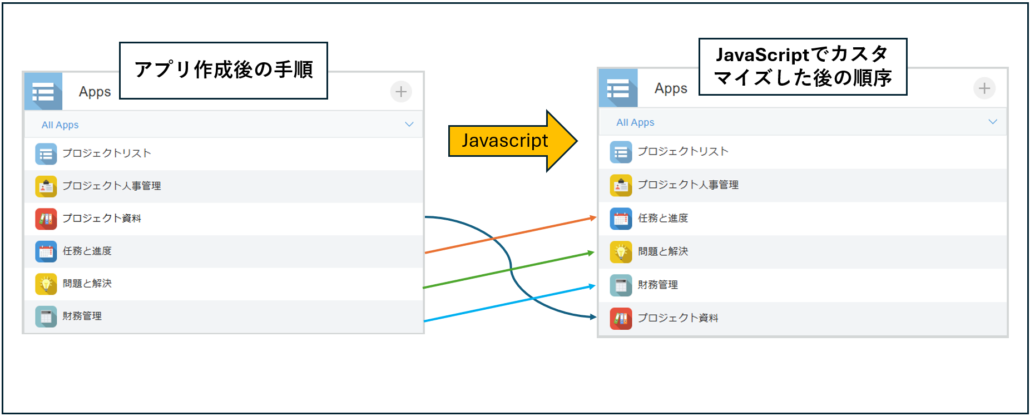 そこで、JavaScriptを使ってアプリの並び替えを行います。