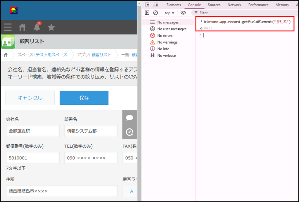 これらのの画面で「kintone.app.record.getFieldElement()」を使用すると、結果はnullになってしまいます。