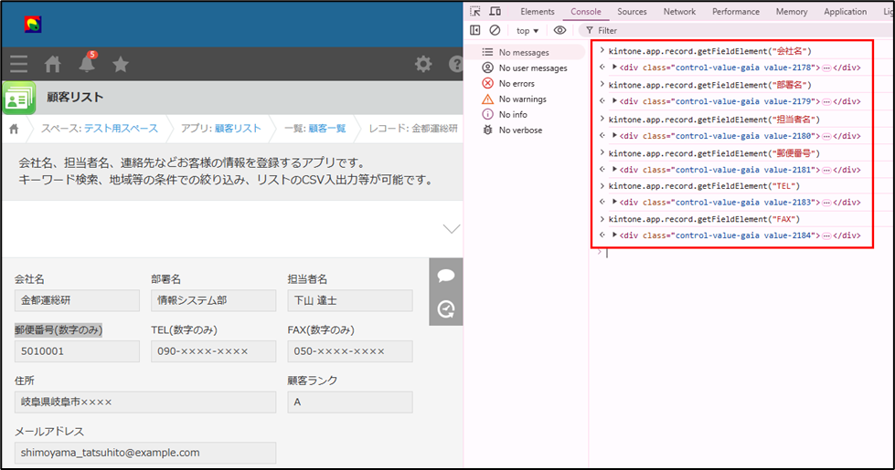 さらに、このクラスは、レコード詳細画面で 「kintone.app.record.getFieldElement()」を使用して取得できるHTML要素のクラスと一致しています。