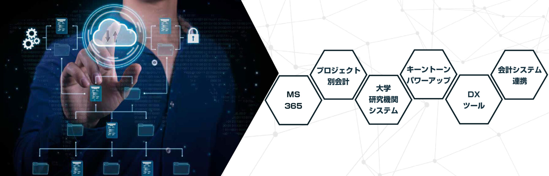 大学・研究機関の業績管理は、これまでは高額なシステム開発かパッケ ージ導入の二者択ーで、当社も長年、Webシステムの拡張性に優れたバ ッケージを提供してきました。 その一方で、DX概念が普及する以前より、WebAPIを整備し、MS365を活用した教員評価システムの構築、パワーBIによるデータの視覚化などDXにも取り組んでおります。