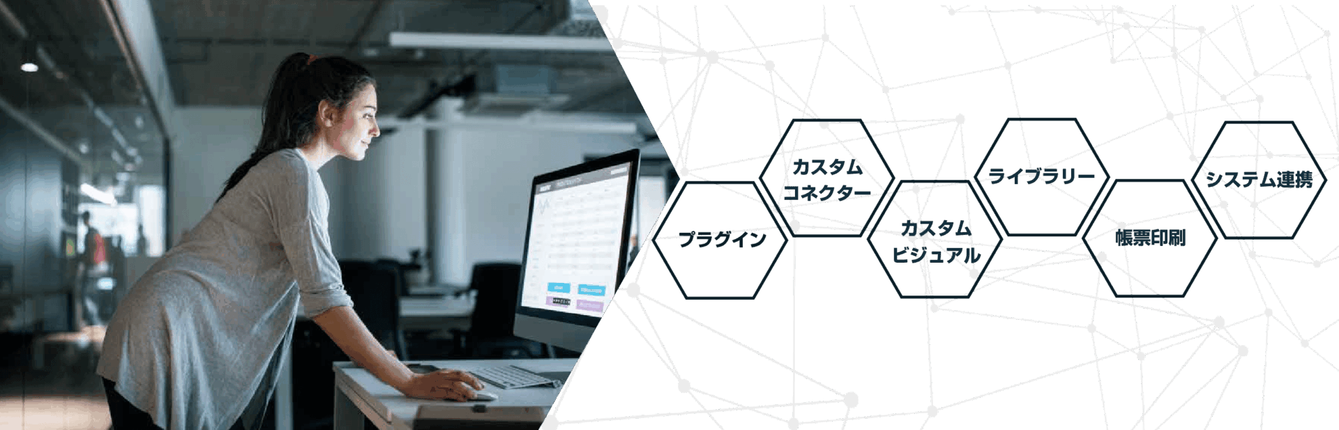 kintoneとPower BIなどの接続コネクターやDX化を推進する帳票出力等各種プラグインを提供