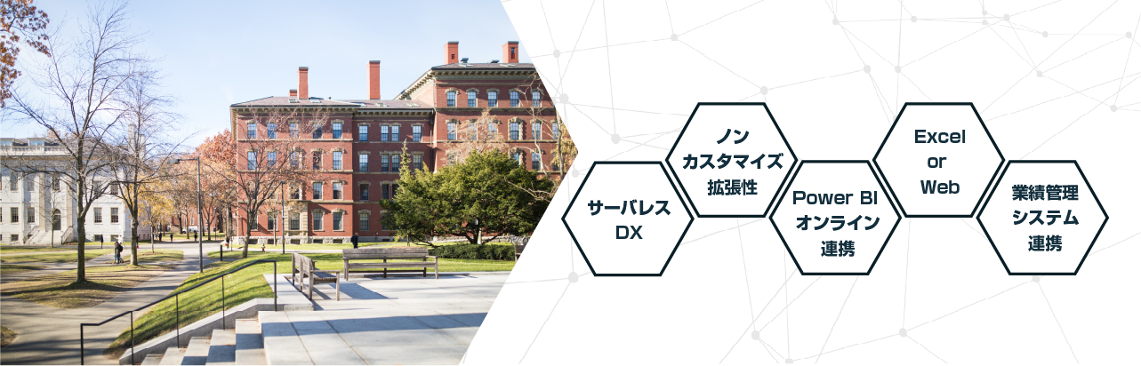 完全パッケージ化を実現した毎年設定変更可能なWebフォーム型教員評価システムです。Power BIで評価者、管理者を支援します。
