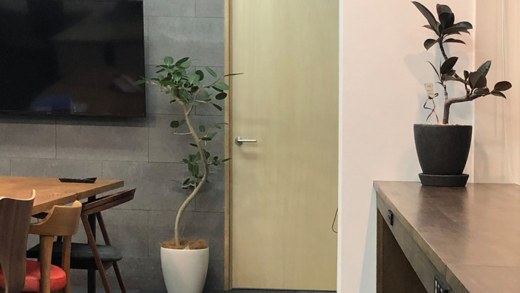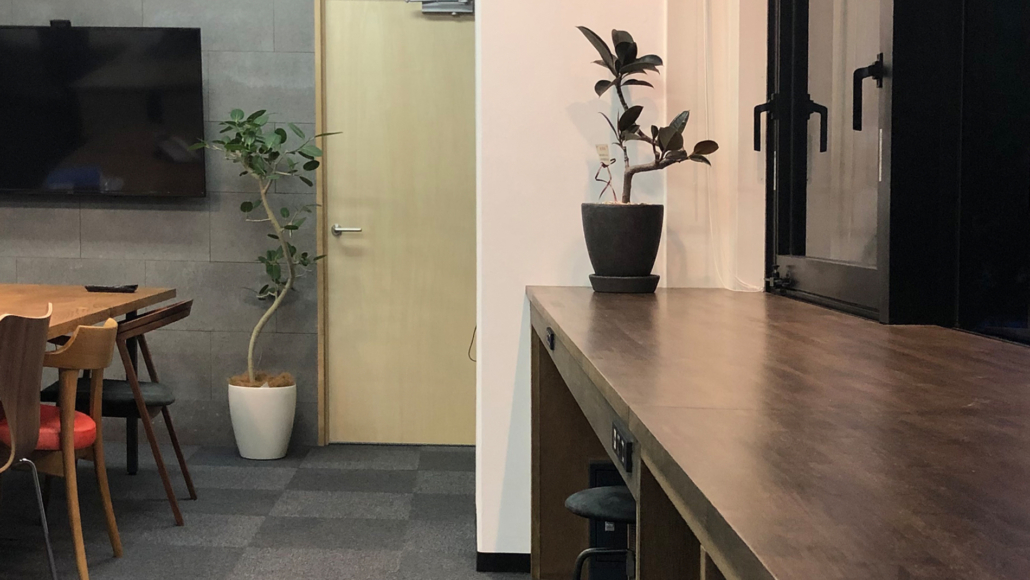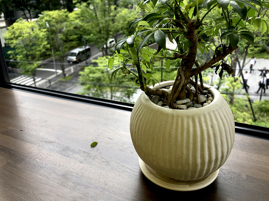 - 壁一面(腰高)の窓ガラスで、十分な採光で明るく開放的なオフィス空間