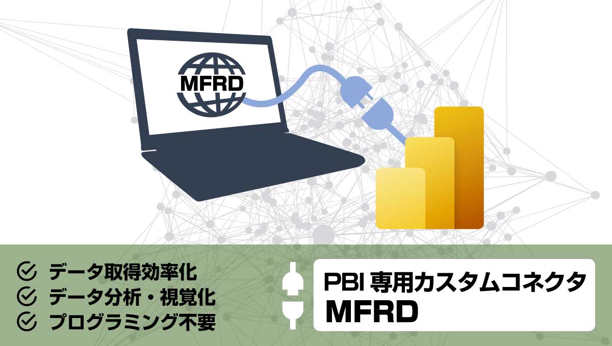 「MediaFusion PBI Connector for MFRD」はMicrosoft社のBIツール、Power BI専用のカスタムコネクタです。本製品を用いることで、弊社MF教員業績管理システム、MF教員評価システムより直接オンラインでデータ取得が可能となります。